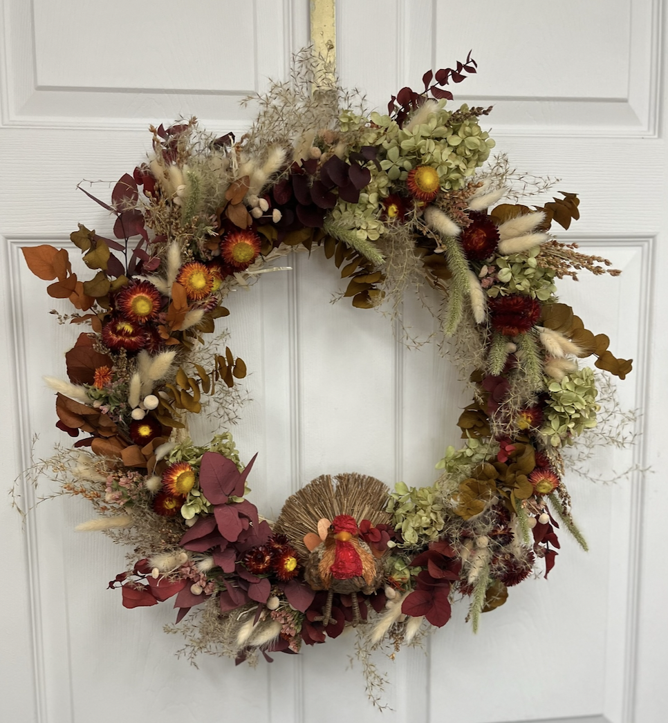 The goal of our flower workshops is to inspire your imagination, enrich your knowledge of flowers, and teach you tips that will give you the skills and self-confidence you need to create dried floral wreaths. Utilizing unique flowers, textures, and styles- let your inner designer come through!